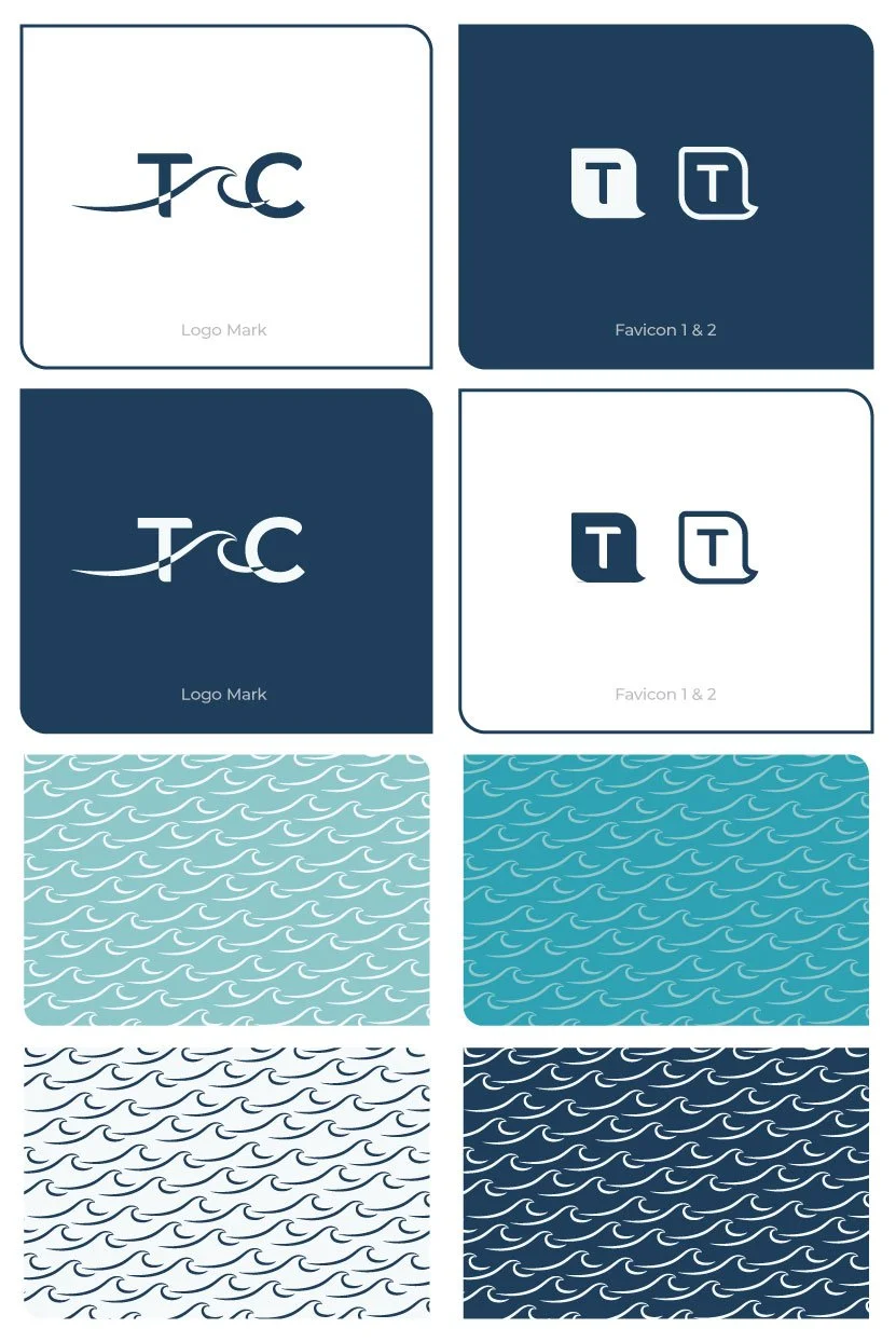 A trouble-area for her were the look of the olive branches. In discussing her intentions, I was concerned the color palette made the ocean look like farm land, and honing on the ocean, (Thalassa, in Greek) was very important to her brand.